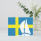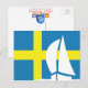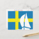 Sveriges segelbåt/ Yacht Nautiskt vykort för Flagga. Vit segelyachtsilhuett och svenskt nautiskt vykort för Sverige.