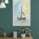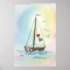Sailing Hearts – Minimalist Boat with Love Sails Poster