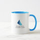 A logo that mimics a sailing ship silhouette using the placement of text and tagline—symbolizing ambition and a sense of voyage.