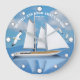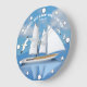 Sailing Yacht on Lugn Vatten with Soaring Fiskmåsa Stor Klocka