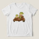 "Get ready for a swamp-tastic adventure! This charming illustration features a duo of happy alligators cruising in style on a vintage 'Rocket Deluxe' brown scooter with a sidecar. Wearing their 'Sailor Ace' and 'First Mate' t-shirts, these cute reptiles are perfect for little explorers. Whether it's for a nursery, a birthday gift, or everyday fun, this retro-inspired design adds a touch of whimsical adventure to t-shirts, mugs, and caps. A must-have for fans of crocodiles, vintage vehicles, and adorable animal art!"