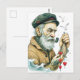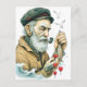 Illustration of an elderly sailor smoking a pipe, wearing a green cap and brown sweater. Small hearts and birds appear around him, creating a light and playful maritime scene.