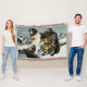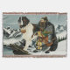 En Saint Bernard-hund och en dvärg är ute på vintern och går antingen på en promenad eller på en sökning.