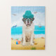 En sann Bernard sitta på stranden är en perfekt gåva till någon som kärlek i hund aveln.