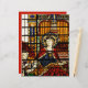 Fina detaljer i den här fotografiska bilden av ett nedfläckad glasfönster med Saint Cecilia - patronsajten av musik, med piporglar och körsbärare/barn.