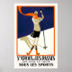 Underbara vintage affisch om en konsthundra kvinna som skidar i Saint Croix Schweiz.