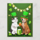 Katt och hund gröna mössor firar St. Patrick's Day