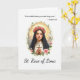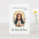 Denna fredliga devotionära utformning har Ro i Lima i mjuka vattenfärgen stil, som bär sin Dominikanska vana och krona i rosor - symboler för hennes ödmjukhet, penans och strålande kärlek för Kristus. Med ett milt uttryck och en gyllene halo står hon som en tröst närvaro för dem som söker uppmuntran, bön eller tyst styrka. Det här kortet är lämpligt att skicka när som helst på året och erbjuder ett meningsfullt sätt att uttrycka stöd, tro och andlig-skönhet genom vittnet av detta älskade helgon.