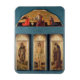 Bild:165428 St.Sebastian mellan St. John the Baptist och St. Anthony the Abbot, i lunette Eternity och Annunciation (tempera and guld löv on Panel). Bellini, Giovanni (c.1430-1516) (och verkstad). Galleria dell'Accademia, Venedig, Italien. Konst, fin konst.