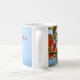 Saipan flammar blommar på ett hav av blått kaffemugg