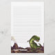 Den djura paradTyrannosaurusRex anpassadet fodrade brevpapper för ditt hem, eller kontoret presenterar vår original- konst av en gullig Tyrannosaurus Rex som anseende i ett förhistoriskt landskap färdigt med en röka vulkan och som målar av våra begåvade barns illustratör Traci Skåpbil Wagoner. Perfekt för åldrar för dinosaurälskare allra. Mot efterkrav delar alla våra förhistoriska brevpapperobjekt i dag och ett leende. Vråla!