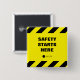 Säkerhetstapp för gult och svartarbete med "Safety Starts here" och din logotyp. Helt anpassade. Du kan ändra texten, placera företagets logotyp eller ta bort den. Säkerhet först!