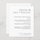 Ett budgetvänligt mindre pappert alternativ på 4,5 tum x 5,6 tum. Kuvert är ett valfritt extra. Ett bekvämt sätt att ge era inbjudna till er bröllop-information om COVID-säkerhetsåtgärden i ställe när ni skickar inbjudningar tillsammans med er webbplats adress i bröllop, med den här fullständiga typutformningen av anpassadet på vit bakgrund. Typografin kan lätt bli personlig till dina egna detaljer. Du kan också ändra färg och bakgrund om du vill matcha ditt bröllop-tema med alternativet Anpassa ytterligare.
