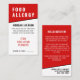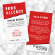Svart Contemporary Lodrät Food Allergy Alert Card. Designat med ett rent och modernt utseende är detta lodrät livsmedels-allergikort perfekt för att äta ut på restauranger eller delta i speciella evenemang. Framsidan har en fet svart bakgrund med skarp vit typsnitt och en minimalistisk layout. I toppen visas "LIVSMEDELSALLERGY" tydligt för att det ska vara lätt att se. Under finns det utrymme för att lägga till ditt namn och en lista över livsmedelsallergier så att personalen snabbt kan se över vad du ska undvika. På grund kan restaurangen skriva bordsnumret och hjälpa köket att följa din beställning med omsorg. Kortets baksida innehåller en kort, respektfull anteckning till kökspersonalen om hur allvarliga dina allergier är, tillsammans med utrymme för att lista en kontakt med akutet. Det här kortet är enkelt och professionell och ger dig sinnesro med en polerad presentation - perfekt för att hålla sak säkert samtidigt som du behåller ett förfinat utseende. Fullt anpassade till kostym för dina behov.