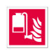 Skumapplikatorenhet och flamikon på röd bakgrund.