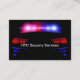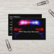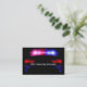 Affärskortmall för säkerhetstjänster med en polispatrullbil med ljus som blinkar och ditt företag namn som finns på framsidan. Anpassa designtexten och byt ut onlinen mot din. Skapat för en försvarsadvokat i tillsatta lagar, DUI, säkerhetspatrullen eller en polis som arbetar på tjänstefunktioner.