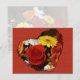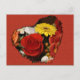Färgrik ros- och tusenskönablomsterbukett fotografi skuren i en taggig hjärtform över en orange strukturerad bakgrund på framsidan. Buketten är på baksidan i ett förminskat opacitetsfotografi av hela buketten. Anpassa malltexten, ta bort text eller klicka på anpassa för att välja en typsnittsstil, storlek och färg du föredrar.