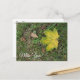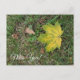 Naturfotografi, höstlöv, "jag saknar dig" vykort. Detta vykort är bra för en romantisk "jag saknar dig" eller för en vänskap eller familj "jag saknar dig". En bild av ett grönt höstlöv som faller efter att ha börjat ändra färg.