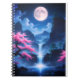 Sakora tree-Moonlit Waterfall with Cherr-pink Anteckningsbok