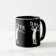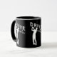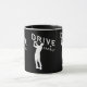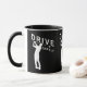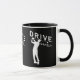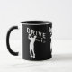 Golfer silhouette-grafik och golfslogan. Kör tryggt - roligt citat på kaffe mugg, gåva till golf älskare med en känsla av humor.