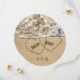 Hjärter i strandsand med skräddarsydd namn för bröllop spara datum.