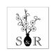 Cherry blommar grenar arrangerade i ett enkelt vas. Två initialer omger basen med en amperand som delvis göms på själva vas.