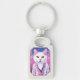 Sakura kattunge rektangulärt silverfärgad nyckelring