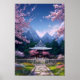 Upplev den fängslande "Sakura Serenity", där ett litet, traditionellt japanskt shrine står mitt i ett bildligt landskap. I förgrunden, i den vackra körsbärszonen träd ram, framträder stora berg vid den avlägsna blommarna. Förlora er i lugnet i denna fridfulla miljö, där naturens tidlösa skönhet och helig omfamnar den perfekt harmonin.