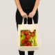 Denna vackra totepåse har ett foto av en blandning av salladsingredienser i en kolander. I det smakrika fotot ingår tomater, radisor, lök från vår och sallat. Utformningen visas på en ekologisk säck mellan livsmedel och väska, men finns även på andra säckar i stilar och färg.