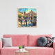 Celebrate Salamanca's golden heart through this vibrant impressionist masterpiece. The iconic Plaza Mayor unfolds in warm terracotta and cream tones, framed by ornate Renaissance architecture and soaring bell towers against swirling turquoise skies. Elegantly dressed figures in vintage attire—women in turquoise and pink dresses, men in sharp suits—stroll the sun-warmed plaza. Lush trees, red umbrellas, and blooming flowers create a tapestry of Spanish charm rendered in bold, expressive brushstrokes celebrating this UNESCO UNESCO architectural treasure.