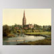 Vintage fotomekanical of the Salisbury Cathedral in Salisbury, Wiltshire, England, som togs mot slutet av 1800-talet. Fotot visar katedralen från andra sidan floden. Officiellen namn är Saint Marys katedral och invigdes 1258. Katedralen innehåller en av de överlevande kopiorna av Magna Carta. Fotografi från LOC (LC-GRÄV-ppmsc-08827).