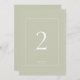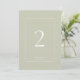Chic och elegant. Det här enkla bordsnumret grönt bröllop har ett vitt ram och text i ett contemporary. Utformningen upprepas längst bak.