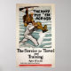 Vintage affisch som visar en sjömansvåg när han bär en soldat på axeln. Flottan satte dem över tjänsten för resor och utbildning, 17-35 år