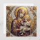 Julkort med bibelvers, Lukas 1:37, ”Ty ingenting är omöjligt för Gud.” Religiöst julkort. Framsidan visar en Jungfru Maria med Jesusbarnet i en mosaikstil.