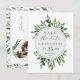 sallig akvarellfoto spara datum postkort. Med vackra akvarellblad och modern fet stil är denna spara-datum-inbjudan helt enligt trenden och perfekt för alla säsonger. Del av en svit för bröllop