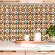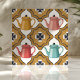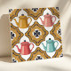 Tillsätt en touch av retro-karaktär till ditt utrymme med denna udda kitsch-inspirerade kakel från 1950-talet. Med lekfulla tekannor i korallrött, senapsgult och turkos, infattade av atomära boomeranger och funkiga svart-vita blomaccent, utstrålar denna kakel kul och nostalgi. Perfekt för att skapa unika backsplashar, accentväggar eller vintage-inspirerade köksdesigner, kombinerar detta symmetriska mönster djärva färger och lekfulla element för att ge personlighet och karaktär till din inredning.