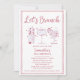 Sallskapsdrinkar Rosa Låt oss Bruncha Inbjudan till fest – En stilren och mångsidig design i handritad stil med skrivstilstext, perfekt för alla typer av brunch-sammanträffar. Oavsett om du är värd för en sommarbrunchfest, "Tack för en Brunch", födelsedagsbrunch, bröllopsbrunch, "Låt oss Brunca" -träff, Bunco och brunch, mimosa-fest, balkongbrunch, "Dirty 30"-firande eller milstolpefödelsedagar som 30-års, 40-års eller 50-årsdag, passar denna inbjudan alla tillfällen. Finns som en omedelbar digital nedladdningsmall, perfekt för delning via sms, e-post eller sociala medier.