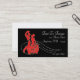 Visitkort för balsaldansstudio eller instruktör. Kortsärdrag kopplar ihop i röd dans på svart bakgrund.