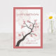 Ett vackert födelsedagskort för din svärdotter illustrerar en kinesisk blommar träd med rosa blomblad i ram i färg som samordnar.