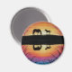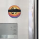 Rund hästmagnet med bild av mare och foal soluppgång, målad av Yvonne Hazeltons för artforhorses.com.
