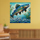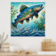 Salmon Jumping Mosaic Blommigt Blue Grönt Peach Poster