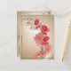 Ett vackert och enkelt matchande bröllopsprogram fläkt med lax och rödblommor på en drömmande, stjärnande, bubbelbeige bakgrund med guld accenttrim. Anpassa med bordsnumren för bröllopsfest. Berätta om du behöver hjälp med den här utformningen och skapar perfekten bröllop stil.