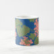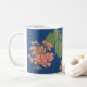 Ett vitt mugg med ett heltryckt skärmtryck av lax rosa-geranium