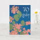 Salmon Rosa Geraniums on Deep Blue, 70 Birthday Kort