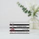 Svart och vit strimlad design med röda stänkspetsar och salonshörningar. Baksidan har ställe till skriva i kundens nästa möte och tack för deras verksamhet. Ändra teckensnittet stil, färg och storlekt genom att klicka på fliken CUSTOMIZE.