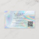 Cute- och glest faux-kort för holografisk bakgrund, förmånskort för både småföretagare och stora organisationer. Designen har en modern, skripttypografi. Perfekt för en skönhetare eller skönhetsalonägare, makeup artist, kostummaker, hårstilist eller kosmetolog. Lägg bara till logotyp, namn och affärsinformation till det här smarta och moderna kortet genom att klicka på knappen "Anpassa". OBS! Holografiinformationen simuleras i teckningen. Det finns inga faktiska holografiska skuggeffekter vid utskrift.
