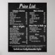 Svart och vit krittavla prislista för salonger.
