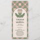 Hjälp dina gäster genom ceremonin med detta eleganta Art Nouveau-bröllopsprogram. Med en sofistikerad palett i salvia grönt och dammigt rosa har detta dubbelsidiga kort utrymme för er ceremonioordning på framsidan och information om bröllopspartiet på baksidan. Den känsliga, botaniska rosillustrationen och det vintage geometriska ramverket ger en tidlös känsla till er bröllopsdag.