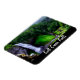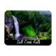 Scenen magnet har dagsljusfotografi av det spektakulära vattenfall som går under namnet Salt Bäck Falls nära Willamette Pass i nationalskogen Willamette, Oregon