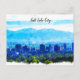 Vackra Salt City Utah-vattenfärgsverk som visar den amerikanska stadens fantastisk och arkitektur. Underbar souvenir- och presentidé för alla turister och besökare på det amerikanska resmålet.
